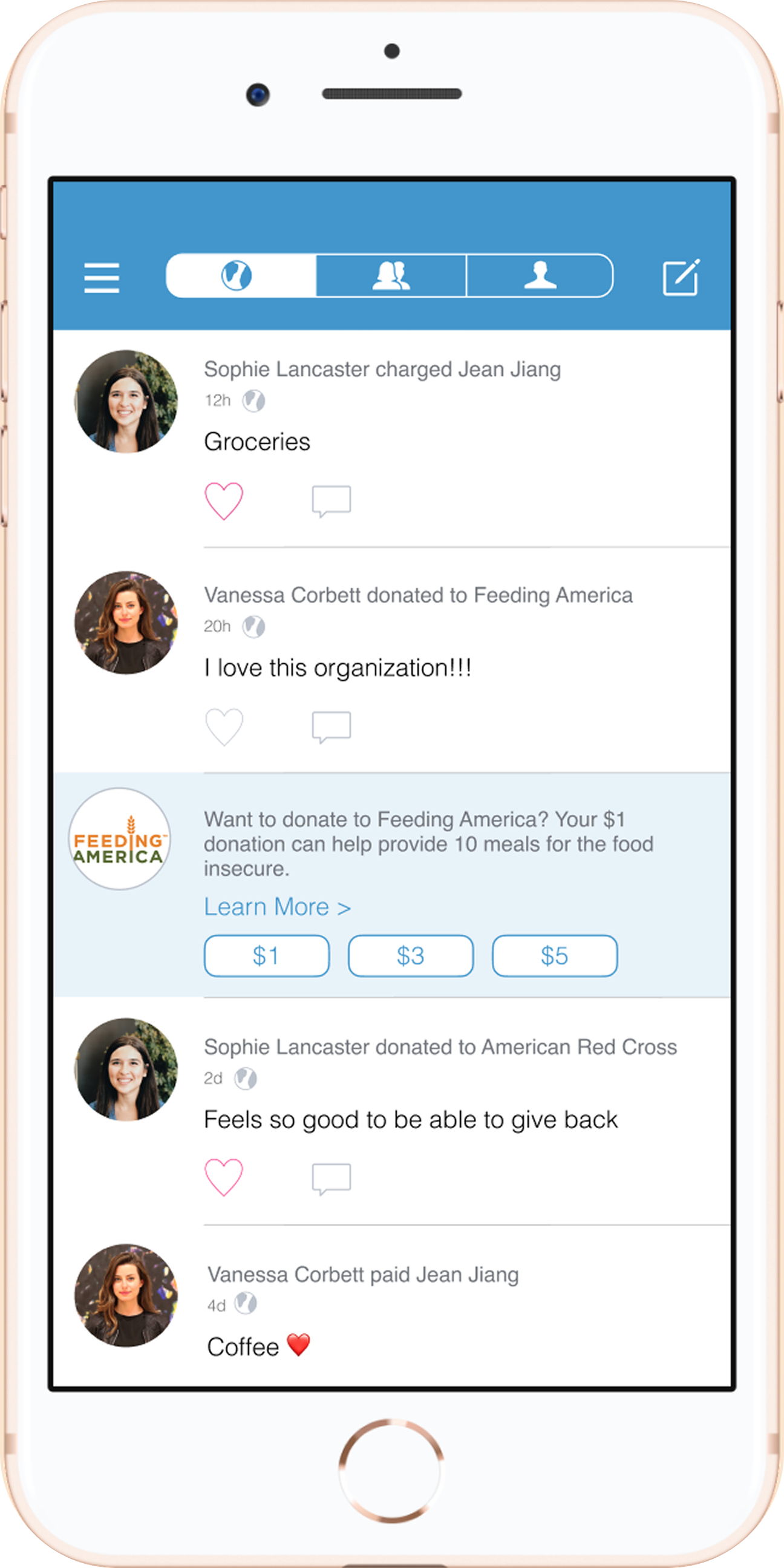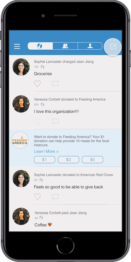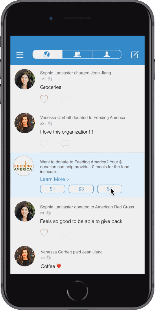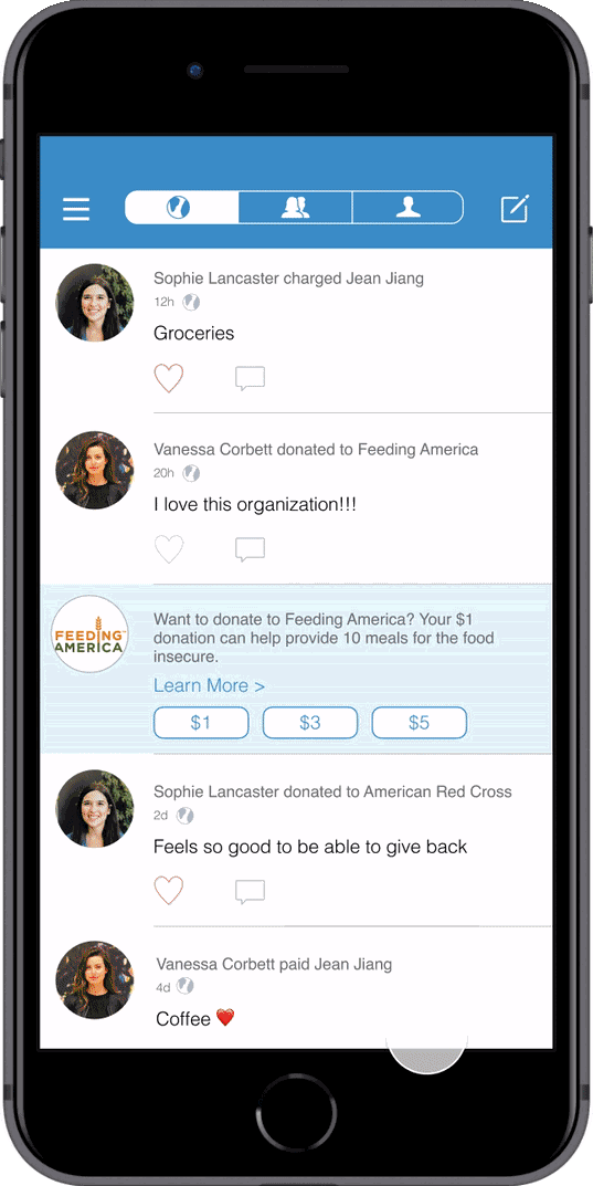 VenmoMeals: A seamless digital donation interaction embedded in Venmo that makes donating to Feeding America easy, social, and engaging.
