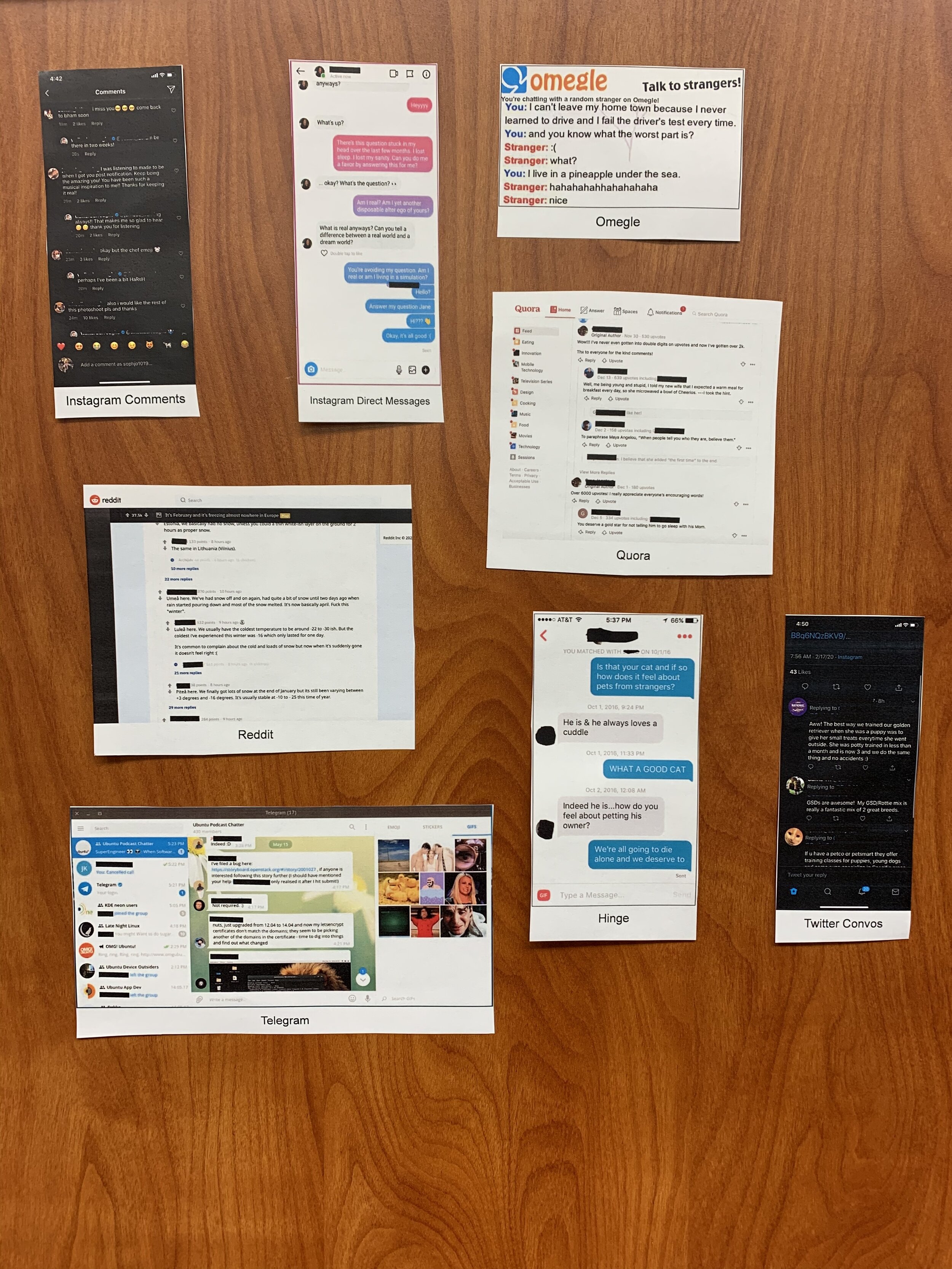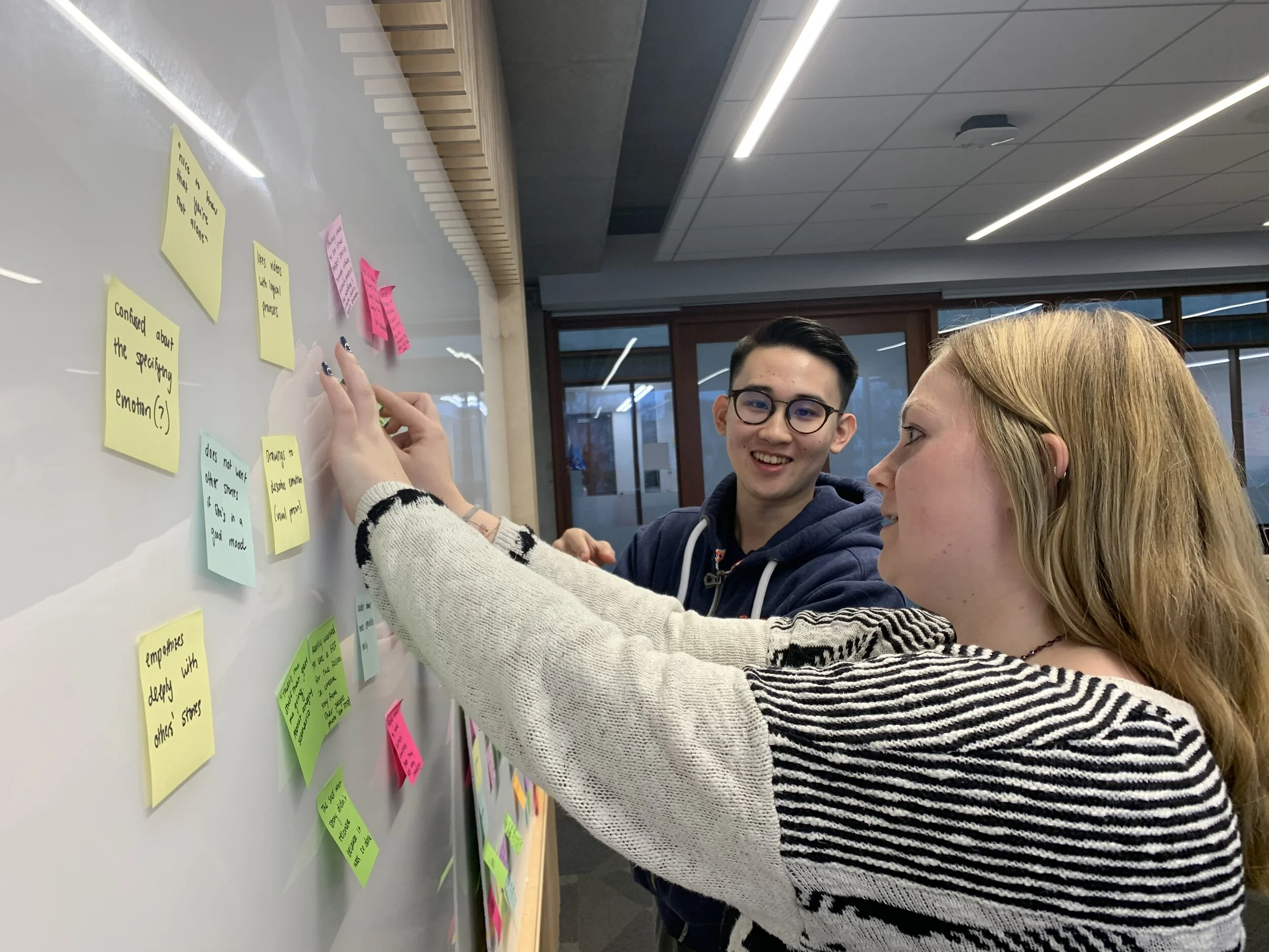 From the insight we uncovered through journey mapping and based on feedback from design reviews, our team created a final point of view (POV) that we used moving forward. The POV that we created was: queer high school and college students who frequent social media platforms need a way to process and track their emotions as they are coming out because they often have conflicting emotions, such as anxiety and clarity when learning more about their identities. This POV influenced the creation of three specific design directions that we presented to our clients in San Francisco. The design directions included an emotional tracking feature on social media platforms, a way to tell people’s stories on social media and make them searchable by emotional tags and a more lighthearted approach that allows queer young adults to search for LGBTQIA+ memes using similar emotional tags. When presenting these to our client we got the feedback that they were particularly attracted to our emotional storytelling idea but that we would need to do further research into things such as tracking emotional triggers, how to make the storytelling relatable and different ways of asking people about their emotions since people often have a hard time explaining their feelings.